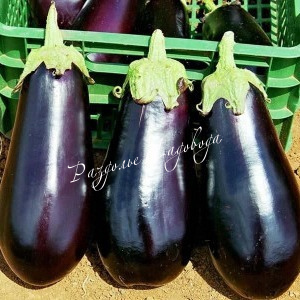 Плод цилиндрический, длиной 15–18 см, поверхность глянцевая, в технической спелости тёмно-фиолетовый.