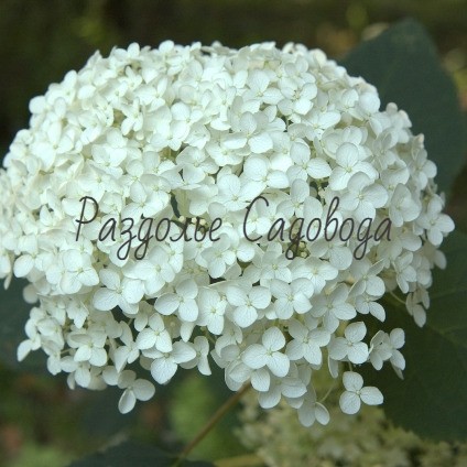 Сорт Аннабелль наиболее распространённый и известный сорт с чисто-белыми крупными соцветиями до 30см в диаметре, с крупными цветками до 2см в диаметре, плотно прижатых к друг другу.