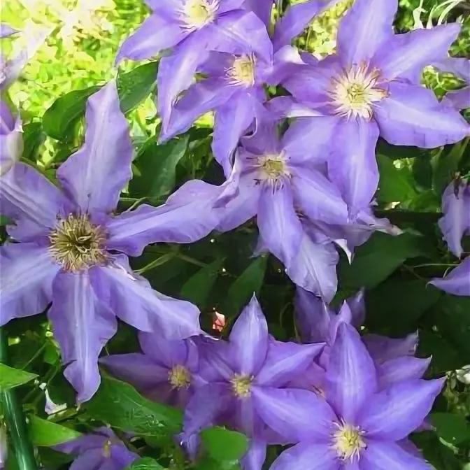 Редкий, очень ценный русский сорт. Цветки светло-лилово-синие со светлой полоской посередине чашелистиков и жёлтыми тычинками, красивой формы.