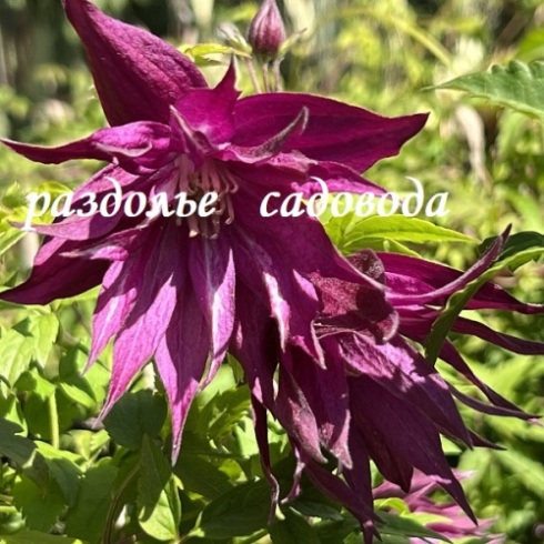 Цветки крупные для княжиков, диаметром 8–10 см, всегда махровые и полумахровые, колокольчатой формы. Окраска насыщенная пурпурно-бордовая, при отцветании светлеющая. Состоят из 4 слегка волнистых заострённых чашелистиков и 15 стаминодий. Тычинки с жёлтыми пыльниками на кремово-зелёных тычиночных нитях.