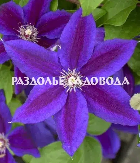 Лиана высотой до 3 м. Цветет весь теплый период года. Цветы крупные, в диаметре 15-20 см. Лепестки имеют фиолетово-голубую окраску с красивой красновато-пурпурной полоской, их края отличаются волнистостью.